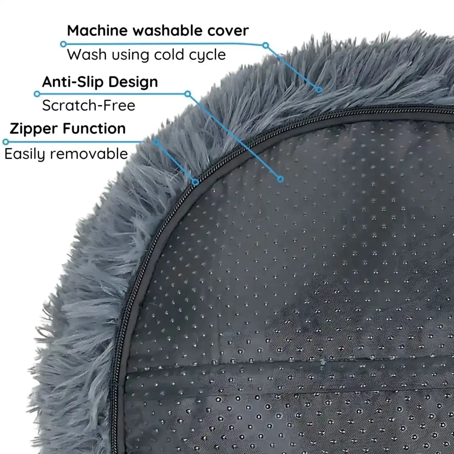 Anti-bacterial faux fur, high-quality cotton and durable nylon guarantee a comfortable and hygienic place for your fluffy friend to fall asleep.